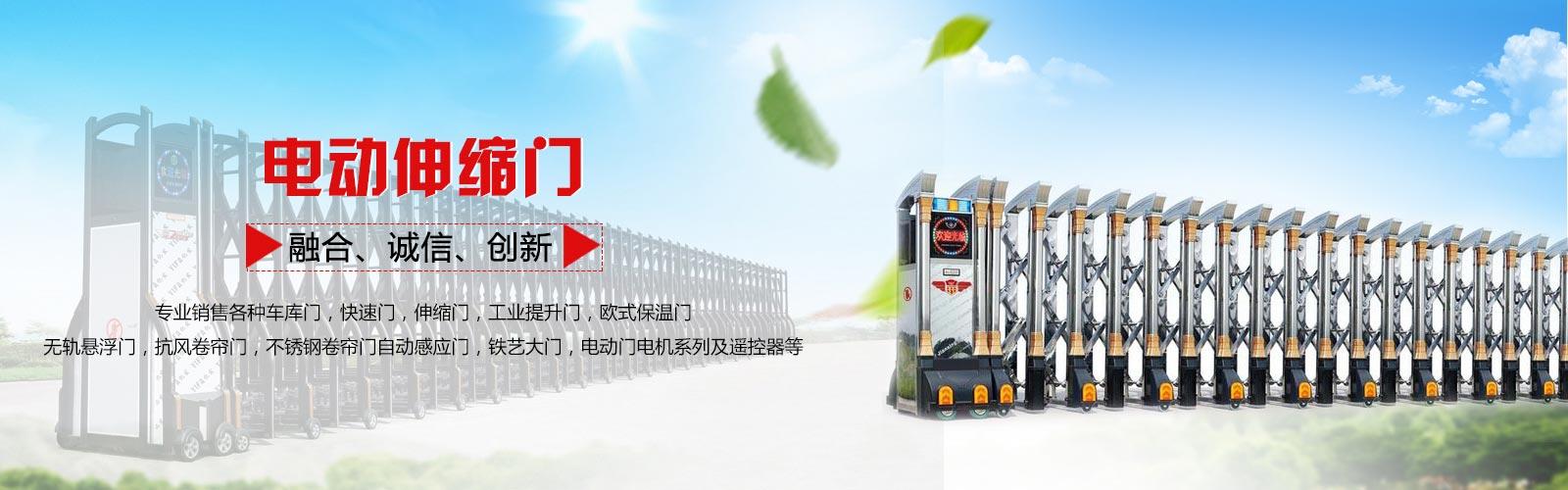 北京科天瑞盛門(mén)業(yè)技術(shù)有限公司坐落于政治,經(jīng)濟文化的中心—北京,低處北京西北部,長(cháng)城以南,軍都山下,素有“北京后花園”之稱(chēng)—昌平。本公司是專(zhuān)業(yè)銷(xiāo)售各種車(chē)庫門(mén),快速門(mén),伸縮門(mén),工業(yè)提升門(mén),歐式保溫門(mén),無(wú)軌懸浮門(mén),抗風(fēng)卷簾門(mén),不銹鋼卷簾門(mén)自動(dòng)感應門(mén),鐵藝大門(mén),電動(dòng)門(mén)電機系列及遙控器等...銷(xiāo)售和安裝一體的綜合性,專(zhuān)業(yè)性公司。 多年以來(lái),公司一直以“質(zhì)量求生存,信譽(yù)求發(fā)展,做百年企業(yè)”的精神,不惜巨資投入,所有產(chǎn)品選材嚴格、產(chǎn)品堅固耐用、美觀(guān)新穎,具有安全可靠、性能穩定、操作方便、開(kāi)閉靈活、噪音低等主要優(yōu)點(diǎn). 多年來(lái),培養了一批專(zhuān)業(yè)的技術(shù)人員,以“科學(xué)、嚴謹、求實(shí)”的專(zhuān)業(yè)工作方式,憑著(zhù)豐富的經(jīng)驗,我們能夠提供從結構設計,材料選擇,專(zhuān)業(yè)安裝等服務(wù)滿(mǎn)足于所有新老客戶(hù)。同時(shí)完善了售后服務(wù),讓客戶(hù)看的舒心,買(mǎi)的放心,用的開(kāi)心。合作的開(kāi)始便是優(yōu)質(zhì)服務(wù)的開(kāi)始,竭誠歡迎新老客戶(hù)朋友致電!
